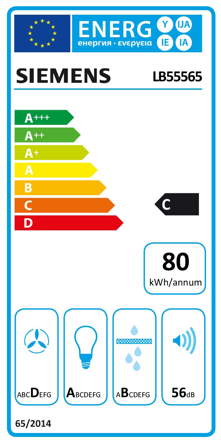 CLASSE DE EFICIÊNCIA ENERGÉTICA Classe de eficiência energética: C Consumo anual de energia: 79.8 kWh/ano Classe de eficiência de dinâmica dos fluidos: D Classe de eficiência de iluminação: A Classe de eficiência de filtragem de gorduras: B Ruído MIN./MAX. no nível normal: 38/56 dB