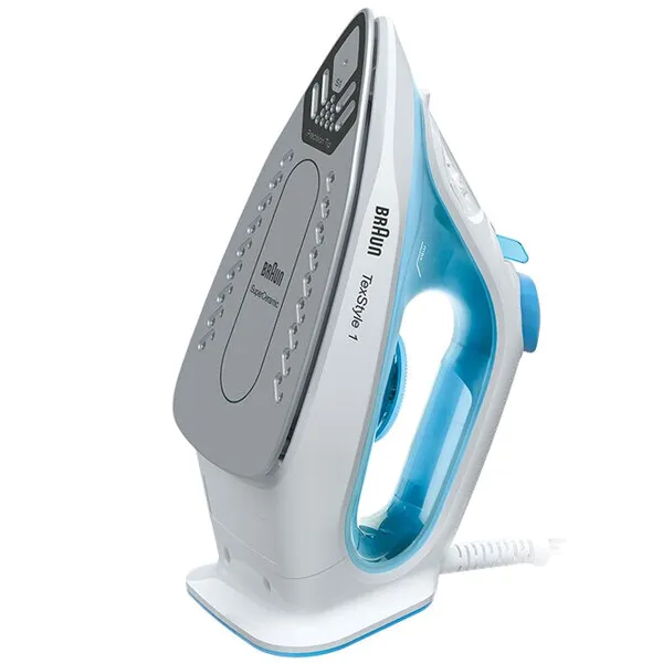 Ponta de precisão Zonas de vapor ativas: 3 Funcionalidade de descalcificação: Self-clean Spray de água Sistema antigota: Automatico Função de vapor vertical Zona triangular de vapor: 120 g/min Taxa de vapor: 25 g/min Abertura extra grande do depósito de água Revestimento de base: SuperCeramic Capacidade do depósito de água: 220 ml Poupança de energia: 50% Comprimento do cabo de alimentação: 1,9 m Potência (W): 2000 Adequado para água da torneira Cor: Blue Armazenamento do cabo Peso: 1,0 kg Aquecimento rápido: 35 s