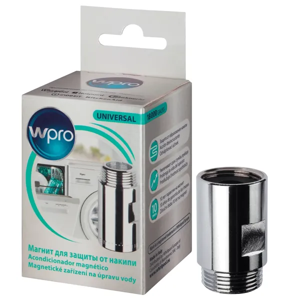 O filtro magnético anticalcário da Wpro ajuda a reduzir o calcário nos elementos de aquecimento dos eletrodomésticos. Com este filtro, quando a água passa nos potentes ímanes, as moléculas de cálcio são impedidas de se tornarem em calcário, prevenindo a formação de calcário nas resistências, sem utilização de químicos. Isto permite manter os excelentes desempenhos de lavagem de roupa e loiça. É fácil de instalar em máquinas de lavar roupa, lavar e secar roupa e de loiça.