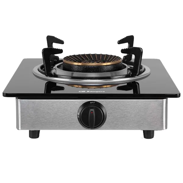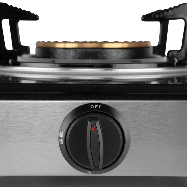 Corpo Inox Superfície de vidro temperado negro Acendimento piezoelétrico Combustível: Gás butano e gás propano Tipo de gás G-30: Pressão 28-30 mbar Tipo de gás G-31: Pressão 37mbar Categoria I3+ Base antiderrapante 1 queimador de tripla coroa Sistema de seggurança FFD (Flame Fail Device): anula a saída de gás no caso da chama se apagar involuntáriamente Fácil de limpar Queimador: 4,3kW Consumo total de gás: 312.9 g/h Dimensões: 30.6 x 15 x 38,3cm Para uso interno e externo