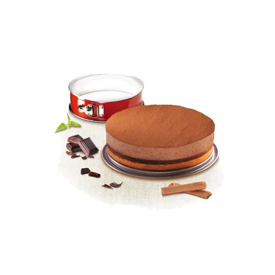 Forma redonda com fundo amovível 25cmAço carbono com revestimento antiaderenteAcabamento lacadoAbertura e fecho em click, base amovível com função de prato de servirFácil de limpar, não compatível com máquina de lavar louça