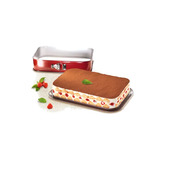Forma retangular com fundo amovível 36x24cmAço carbono com revestimento antiaderenteAcabamento lacadoAbertura e fecho em click, base amovível com função de prato de servirFácil de limpar, não compatível com máquina de lavar louça