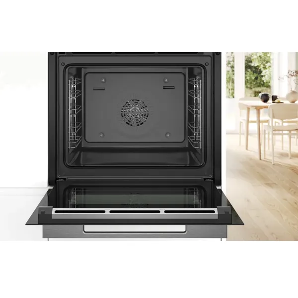 Forno multifunções com 14 modos de aquecimento:  ar quente 3D, calor superior/inferior, grelhar com ar quente, grelhar – grande quantidade, Grelhar-pouca quantidade, função pizza, calor inferior, assar lentamente, descongelar, Preaquecer loiça, Manter quente, ar quente suave, Calor superior/inferior suave, função Air Fry