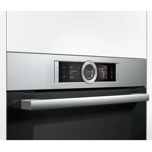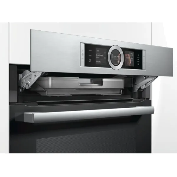 Forno combinado a vapor, integrável com 12 modos de aquecimento: Ar quente 4D, Ar quente suave, Calor superior/ inferior, Calor superior/ inferior suave, Grelhar com ar quente, Grelhar-grande quantidade, Grelhar-pouca quantidade, Função Pizza, Calor inferior, Assar lentamente, Preaquecer a loiça, Manter quente