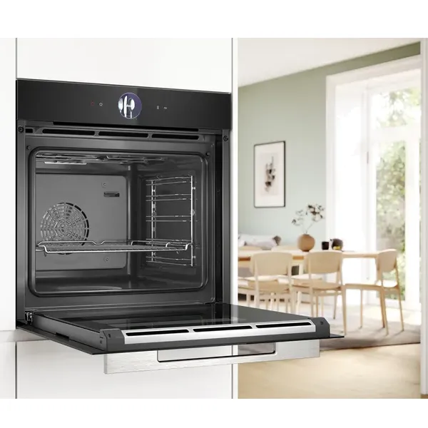 Porta do forno com abertura rebatível, SoftClose (fecho suave da porta), SoftOpen (abertura suave da porta)