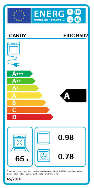 DESEMPENHOS Classe eficiência energética: A Consumo energia cozedura convencional: 0,98 kWh