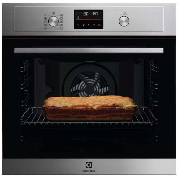 Funções eletrónicas: Duração da cozedura, Lembrete de limpeza, 45 programas de Cozedura Assistida, Sinal acústico, Alarme / som de erro, Desconexão de segurança automática, Ajuste de volume de sinal acústico, Intensidade luminosa regulável (ON), Sistema de abertura de porta, Regulação eletrónica da temperatura, Bloqueio eletrónico da porta, Aquecimento rápido selecionável, Botão luz interior (menu + acesso direto), Indicação de temperatura real (°C), Indicador de aquecimento residual, Informação de serviço, Proposta de temperatura, Hora do dia, Cronómetro, Teclas sonoras de menu / desativação, Início diferido, Modo demonstração com código, Temporizador, Mensagem de "não Conetado" no menu, Bloqueio para crianças (no modo desligado), Bloqueo de funções (em funcionamento), Tempo e fim de cozedura, 3 ciclos de Pirólise