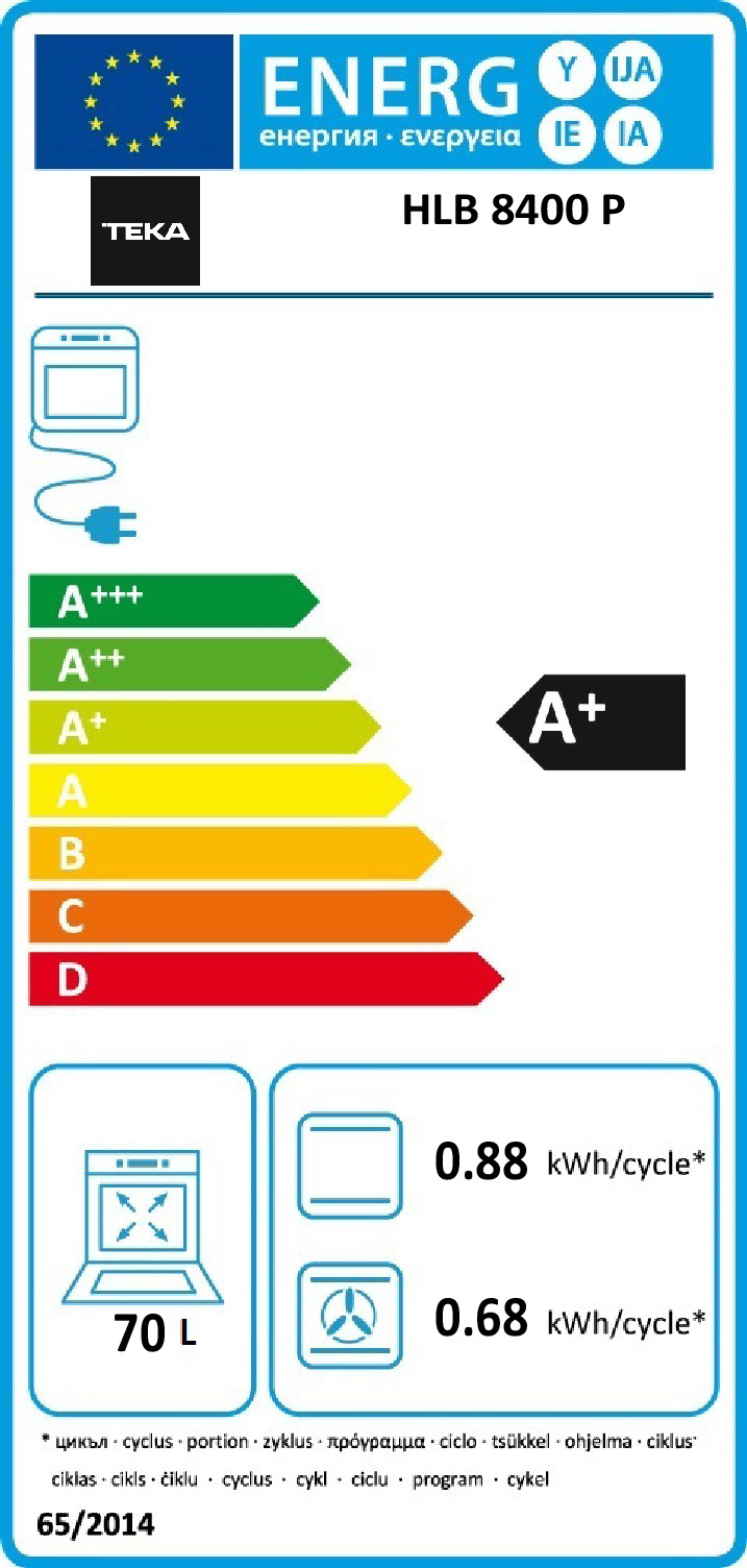 Forno pirolítico multifunções Urban Colors Sistema de limpeza DualClean: Auto limpeza pirolítica (3 níveis) + Teka Hydroclean® PRO automático Multifunções SurroundTemp – 8 funções Painel Touch Control com programação de início e fim de cozinhado Sistema de 1 guia telescópica Plus Extension, 5 alturas de cozinhado Aquecimento rápido Porta com quatro vidros Sistema de abertura e fecho da porta Soft Close Desligar de segurança com abertura da porta Cavidade interior esmaltada especial pirólise Saída de vapores pela parte superior da porta Fecho automático de segurança durante a pirólise Ventilação tangencial de duas velocidades Bandeja profunda em esmalte pirolítico e grelha reforçada (com retenção de segurança) Capacidade líquida (litros): 70 Capacidade bruta (litros): 71 Medidas interiores (axlxp): 364x475x402mm Medidas gerais (axlxp): 595x595x537+22mm