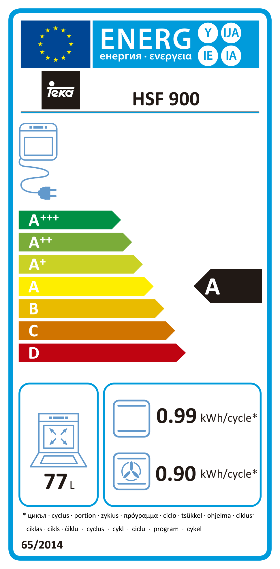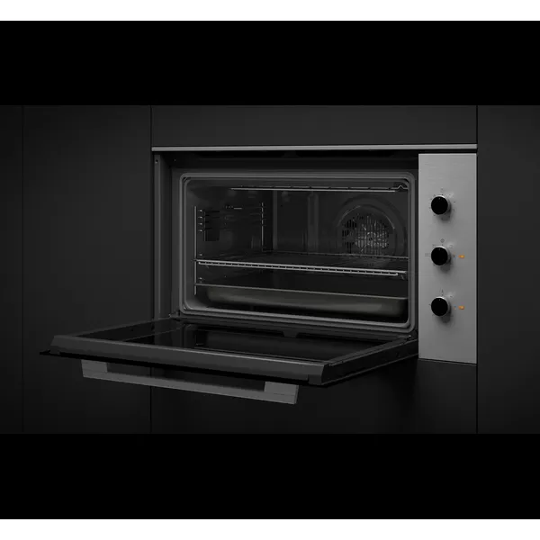 Sistema de limpeza Teka HydroClean® Multifunções SurrondTemp – 7 funções Temporizador mecânico de fim de cozinhado Suportes laterais cromados, 5 alturas de cozinhado Porta de vidro duplo Ventilação forçada Bandeja profunda especial assados e grelha Classificação energética: A Capacidade: 77lts Cor: Inox Medidas exteriores (axlxp): 480x890x560mm