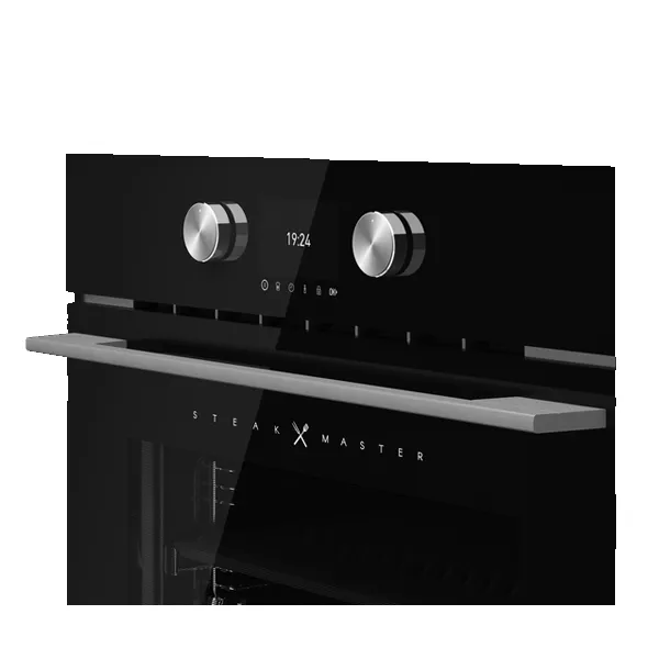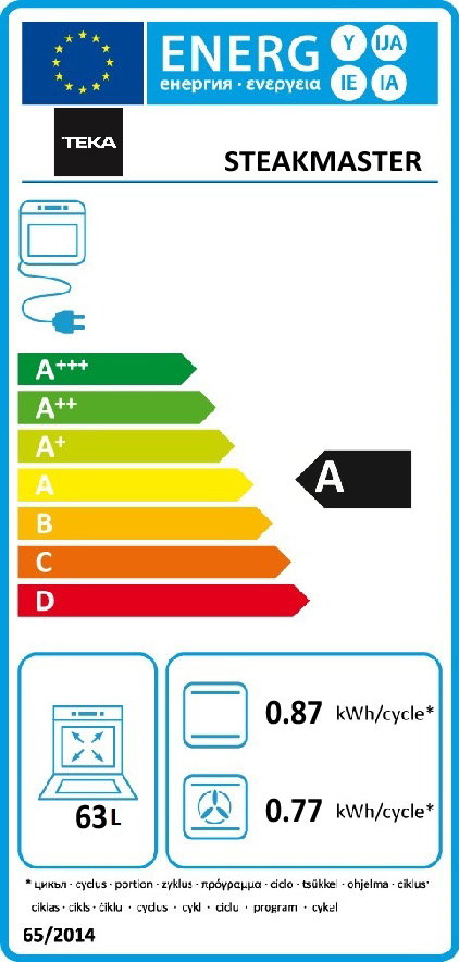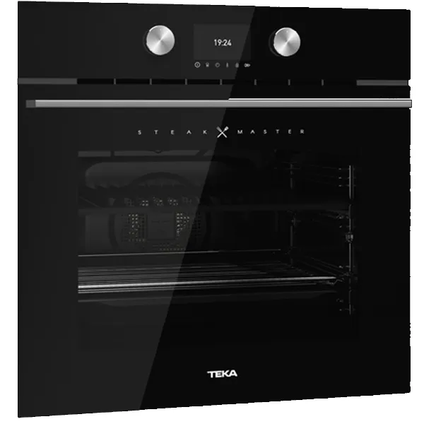 Forno SteakMaster com SteakGrill (700º) Sistema de limpeza DualClean: Auto limpeza pirolítica (3 níveis) + Teka Hydroclean® PRO automático Display a cores TFT 4” com assessor pessoal de cozinhado (20 receitas pré-programadas) Comandos retroiluminados com frente em cor inox Multifunções SurroundTemp – 12 funções Sistema de 2 guias telescópicas (Easy Slide), 5 alturas de cozinhado Função SteakMaster com grill especial, programas automáticos e grelha de ferro fundido exclusiva Funções Slow cook, ECO, fermentar massas Aquecimento rápido Bloqueio de segurança para crianças Porta com quatro vidros Sistema de abertura e fecho da porta Soft Close Desligar de segurança com abertura da porta Saída de vapores pela parte superior da porta Fecho automático de segurança durante a pirólise Ventilação tangencial de duas velocidades Bandeja profunda em esmalte pirolítico e grelha reforçada (com retenção de segurança) Capacidade líquida (litros): 63 Capacidade bruta (litros): 71 Medidas interiores (axlxp): 364x475x402mm Medidas gerais (axlxp): 595x595x537+22mm