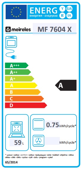 Forno eléctrico estático: 4 funções (grelhador, resistência superior, resistência inferior, resistência superior e inferior) Manípulos cilíndricos Luz Grelhas laterais e grelha de travamento Tabuleiro de recolha de molhos Esmalte easy to clean Porta com vidro interior amovível Vidro duplo termoreflector Eficiência energética: Classe A