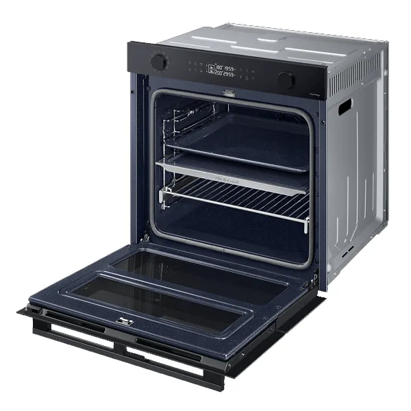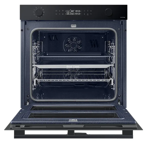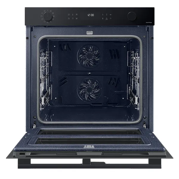 Tipo de Forno: Dual Cook Flex Cor do Forno: Preto Abertura da Porta: Descendente Vidro na Porta do Forno: Quádruplo Display: LED (branco) Material da cavidade: Cerâmica Enamel Comandos: Rotativos e táteis Tipo de vapor: Vapor Natural Potência do Grill Superior (In/Out): 1600 / 1100 W Potência do Grill Inferior: 1100 W Modo Único (Calor Superior + Convecção) Modo Único (Grelhador Largo) Modo Único (Grelhador Eco) Modo Único (Calor inferior + Convecção) Potência de Convecção: 1200 / 1200 W Método de Limpeza: Pirolítico Limpeza a vapor Ligação Wi-Fi Programas automáticos: 40 Simples / 10 Dual Cook Programa Air Sous Vide Bloqueio para crianças Temporizador Relógio Sinal fim do tempo Lâmpada Interior: 25W / 40W (Halogéneo) Lâmpada Interior (Posição): Topo / Lateral Luz (Lâmpada) Ligar/Desligar Capacidade (Forno Completo): 76 L Cavidade (LxAxP): 560 x 579 x 549 mm Produto (LxAxP): 595 x 596 x 570 mm Acessórios: Tabuleiro de Forno (1 ); Tabuleiro de grelha (1); Calhas Telescópicas:1 nível; Tabuleiro Vapor Natural (Natural Steam) Tensão da Ligação: 230-240 V ~ 50 Hz Potência de saída: 3650 W(230 V)-3950 W(240 V) Classe de Eficiência Energética: A+ Gamas de temperatura – cavidade completa (°C): 30 ~250°C (Grill 100 ~270°C) Gamas de temperatura – cavidade superior / inferior (°C): 40~250 °C Gamas de temperatura – conveção Twin (°C): 40~250 °C Conectividade App SmartThings