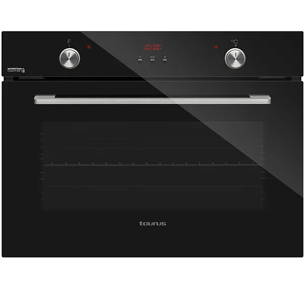 Compacto 7 funções de aquecimento Com função grill, super grill e aquecimento ventilado Frontal em vidro preto Comandos retráteis metálicos (PIPO) Puxador metálico Temperatura regulável até 270ºC Visor a LED vermelho, temporizador Digital e programador . Porta em vidro duplo facilmente desmontável Sistema de limpeza “WaterSteam Clean System” Com grelhas laterais metálicas com 5 níveis Guias telescópicas Sistema de abertura “Soft Close” Classe de eficiência energética: A Acessórios incluídos: Tabuleiro fundo, grelha e tabuleiro suplementar para funções de vapor. Luz interior Indicador de temperatura Vidro de baixa emissão térmica Painel slim Dimensões (LxPxA): 59,5x55x45,5cm