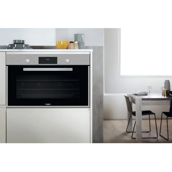 Forno Multifunções Maxi de 90cm Cavidade de 100 litros Classe A Aquecimento superior e inferior Ventilação Comandos digitais Botões Push-Push Limpeza manual Vidros duplos no forno Potência do forno: 2900W Potência do grill: 2850W Turbo Grill, Bottom+Ventilado, Convencional, Cozedura Convecção, Modo Eco, Grelhador e Ventoinha Espeto rotativo Temporizador Luz interior Dimensões: A 59,4 x L 89,5 x P 56,3 cm