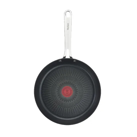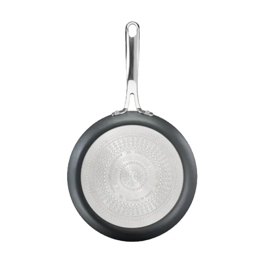 Diâmetro: 21cm Alumínio com revestimento interior antiaderente e reforço com cristais duros Titanium anti riscos 6x mais duradouro Novo Thermo-Signal (indicador de temperatura ideal) Resistente a riscos Base Thermo-Fusion plus extra espessa para uma distribuição do calor mais rápida e homógenea Revestimento exterior escovado antiaderente Pega elegante em aço inoxidável Base superior de indução Utilização no forno até 250ºC Compatível com todas as fontes de calor, incluindo indução