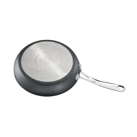 Diâmetro: 24cm Alumínio com revestimento interior antiaderente e reforço com cristais duros Titanium anti riscos 6x mais duradouro Novo Thermo-Signal (indicador de temperatura ideal) Resistente a riscos Base Thermo-Fusion plus extra espessa para uma distribuição do calor mais rápida e homógenea Revestimento exterior escovado antiaderente Pega elegante em aço inoxidável Base superior de indução Utilização no forno até 250ºC Compatível com todas as fontes de calor, incluindo indução
