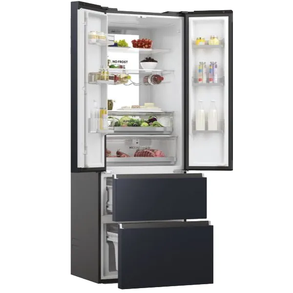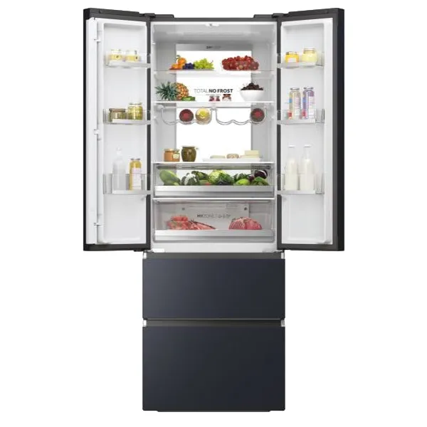 Instalação: Instalação livre Categoria de Produto: Multiportas Tipo de produto: 4 portas Tecnologia de frio: No Frost Painel Conetividade: Controlo Remoto App IoT: hOn Coluna de circulação de ar Multiflow Processo de descongelação da secção do frigorífico: Automático Processo de descongelação da secção do congelador: Automatica no frost Junta de borracha: Empurrar Chiller – Fresh zone Corrente (A): 1.5 Frequência (Hz): 50 Voltagem (V): 220-240 Interface de comando: Eletrónico Localização dos comandos: Painel comandos na porta Indicador de porta aberta – frigorífico: Acústico Temperatura ajustável: Frigorífico – congelador Congelação rápida Férias Função Super refrigeração Cor/Material do corpo: Black Número de gavetas de congelação: 2 Frigorífico com ventilador interno Material das prateleiras: Vidro Prateleiras da porta: Perfil em metal Material das prateleiras da porta: Plástico cristalino Acabamento das prateleiras: Perfil em silver Número total de prateleiras da porta: 6 Pegas: Pegas integradas confortáveis Porta garrafas: Dobrável vinho rack Luz: Led Número de gavetas: 1 Número de suportes para os ovos: 1 branco Número de covetes para gelo: 1 transparente Número de prateleiras ajustáveis no compartimento do frigorífico: 3 Classe Energética: E Classe de ruído: C Nível de ruído dB(A): 37 Consumo anual de energia: 302 Classe climática: SN Capacidade total do compartimento de refrigeração (l): 337 Capacidade total do compartimento de congelação (l): 140 Capacidade total (l): 477 Classificação por estrelas: 4 Autonomia em caso de falha de energia (h): 14 Capacidade de congelação (kg): 14 Altura: 2006mm Largura: 700mm Profundidade: 675mm