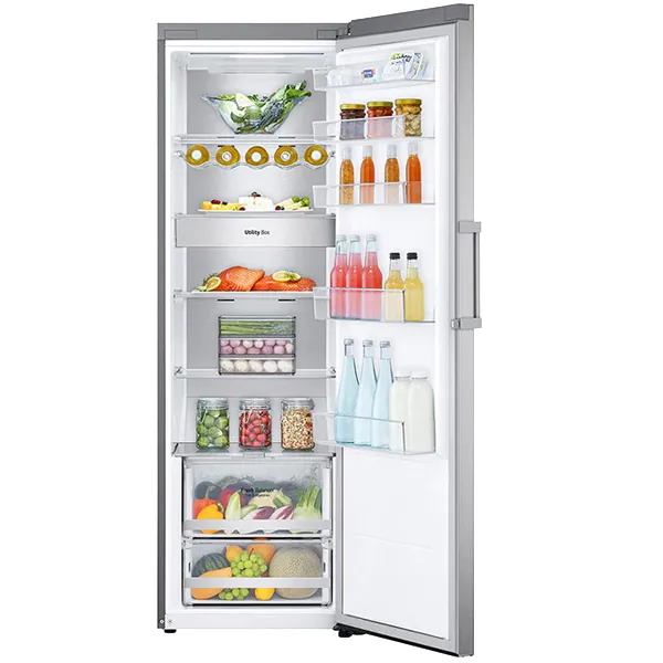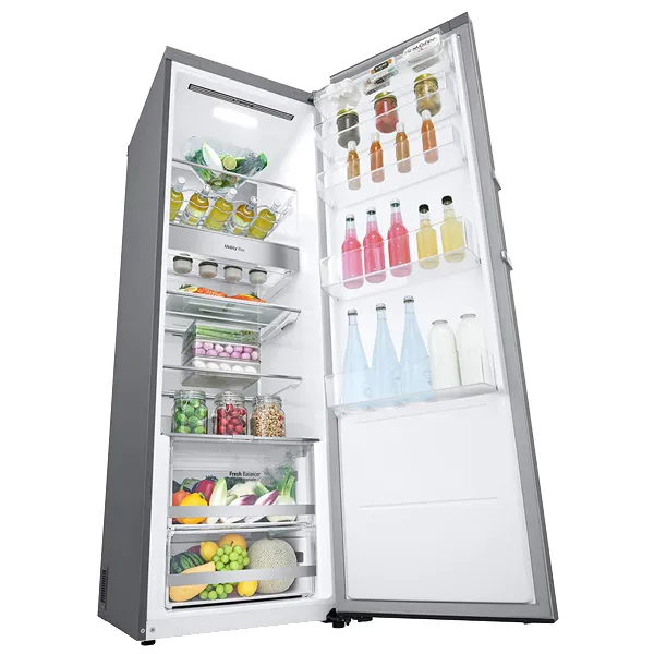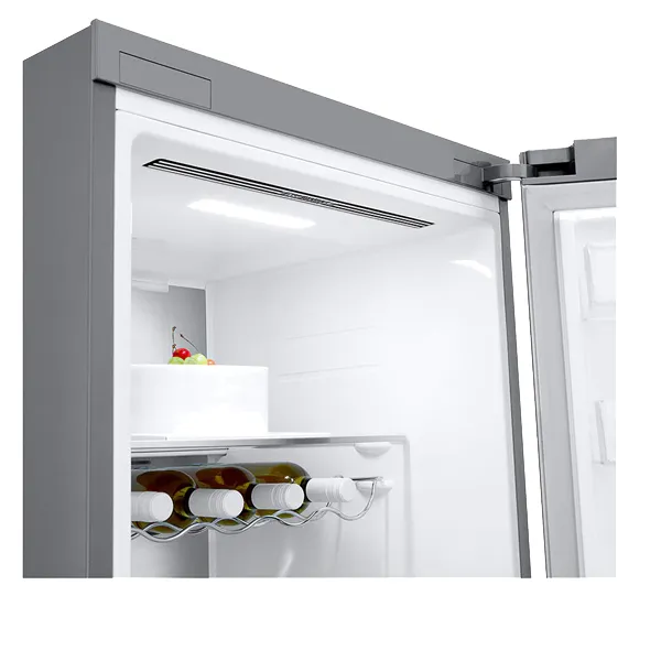 Capacidade bruta total (ℓ): 413 Capacidade bruta do frigorífico (ℓ): 413 Capacidade útil total (ℓ): 386 Capacidade útil do frigorífico (ℓ): 386 Display: Exterior, Metal Touch Sensores digitais Arrefecimento rápido Total No Frost Bloqueio para crianças Alarme na porta Modo férias Smart Diagnosis™ Door Cooling™ Metal Fresh Gás refrigerador: R600a Emissão de ruído (dB): 37 Classe de eficiência energética (A-G): D Classe de emissão de ruído (A-D): C Consumo energético anual (kWh): 97 Inverter Linear Compressor™ Classe Climática: SN-T Cor das portas: Metal Sorbet Porta Reversível Luz interior: LED Multi-Air Flow™ Prateleiras de vidro temperado: 3 Prateleira dobrável Suporte para garrafas Espaço para garrafas de 2 litros Door Cooling™ FRESHBalancer™ Suporte para ovos Dimensão sem portas (L x A x P, em mm): 595 x 1860 x 600 Dimensão com portas (L x A x P, em mm): 595 x 1860 x 707 Faz conjunto Side By Side com Arca Vertical GFM61MBCSF