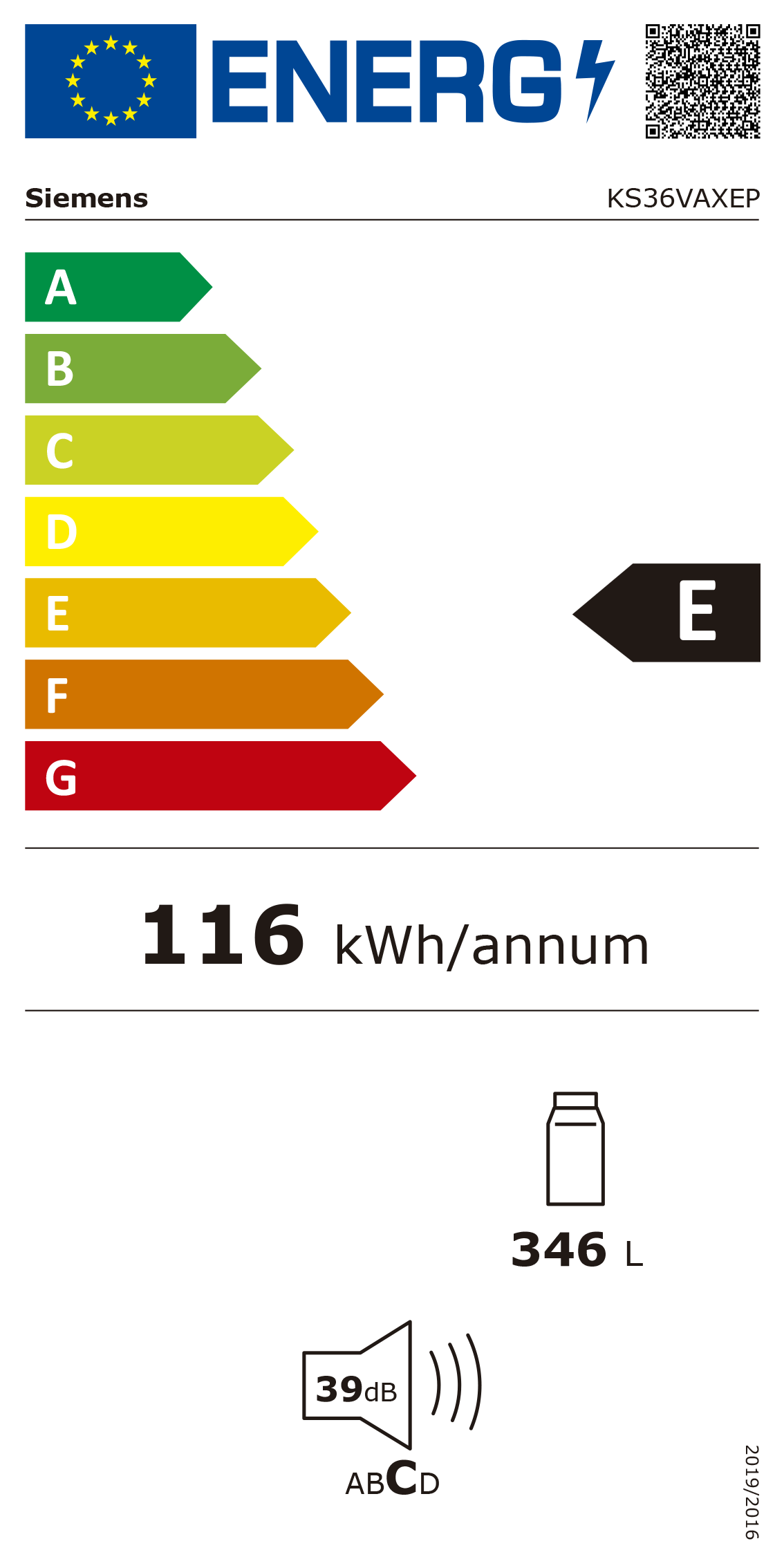 Consumo anual de energia (kWh/ano): 116 kWh/ano