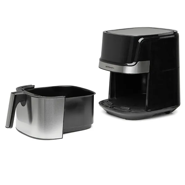 Frente com detalhes em aço inoxidável.