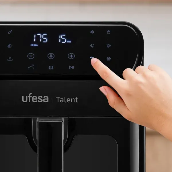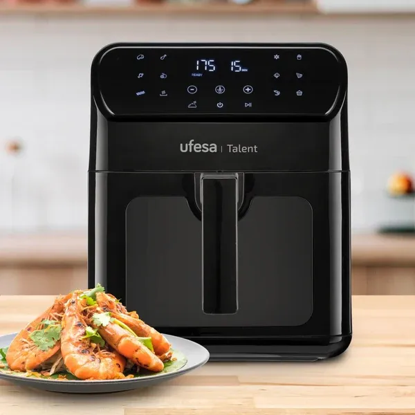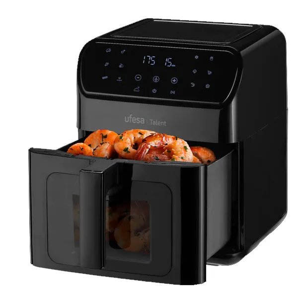 Potência: 1500W 13 programas predefinidos Capacidade: 6,5lts Controlo digital de tempo e temperatura Cesta com janela e luz interior Tecnologia de circulação de ar 360ºc de alta velocidade Controlo de temperatura até 200ºc