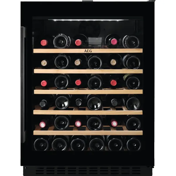 Display digital 6 largura completa Prateleiras, Madeira Iluminação interior Cor: Preto+Vidro Porta com abertura Direita e reversível Pés ajustáveis Classe de eficiência energética (Regulamento (UE) 2017/1369): G Soma do volume dos compartimentos de refrigeração (UE 2017/1369): 145 Classe climática (UE) 2017/1369: N-ST Consumo ponderado de energia em kiloWatts hora por ano (kWh/a) (EU) 2017/1369: 148 Índice de eficiência energética (UE 2017/1369): 170 Classe de emissão de ruído aéreo (UE 2017/1369): D Emissão de ruído aéreo (UE 2017/1369): 42 Temperatura ambiente mín ºC: 16 Temperatura ambiente máx ºC: 38 Voltagem, V: 220-240 Frequência, Hz: 50 Ligação (W): 90 Número de garrafas: 52 Nº de prateleiras do frigorífico: 6 largura completa Nº de tampas: 1 Iluminação: Interna. LED Dimensões (AxLxP), em mm: 820x595x565 Dimensões de encastre (AxLxP), em mm: 822x600x550