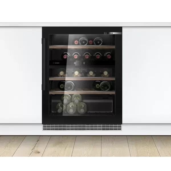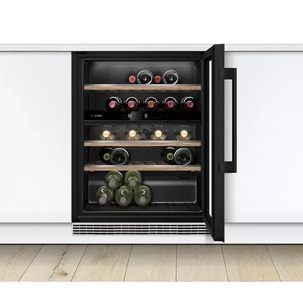 DESIGN Embutível sob bancada Frigorífico de 1 porta integrável Porta de vidro Porta com vidro triplo, Porta em vidro com proteção UV