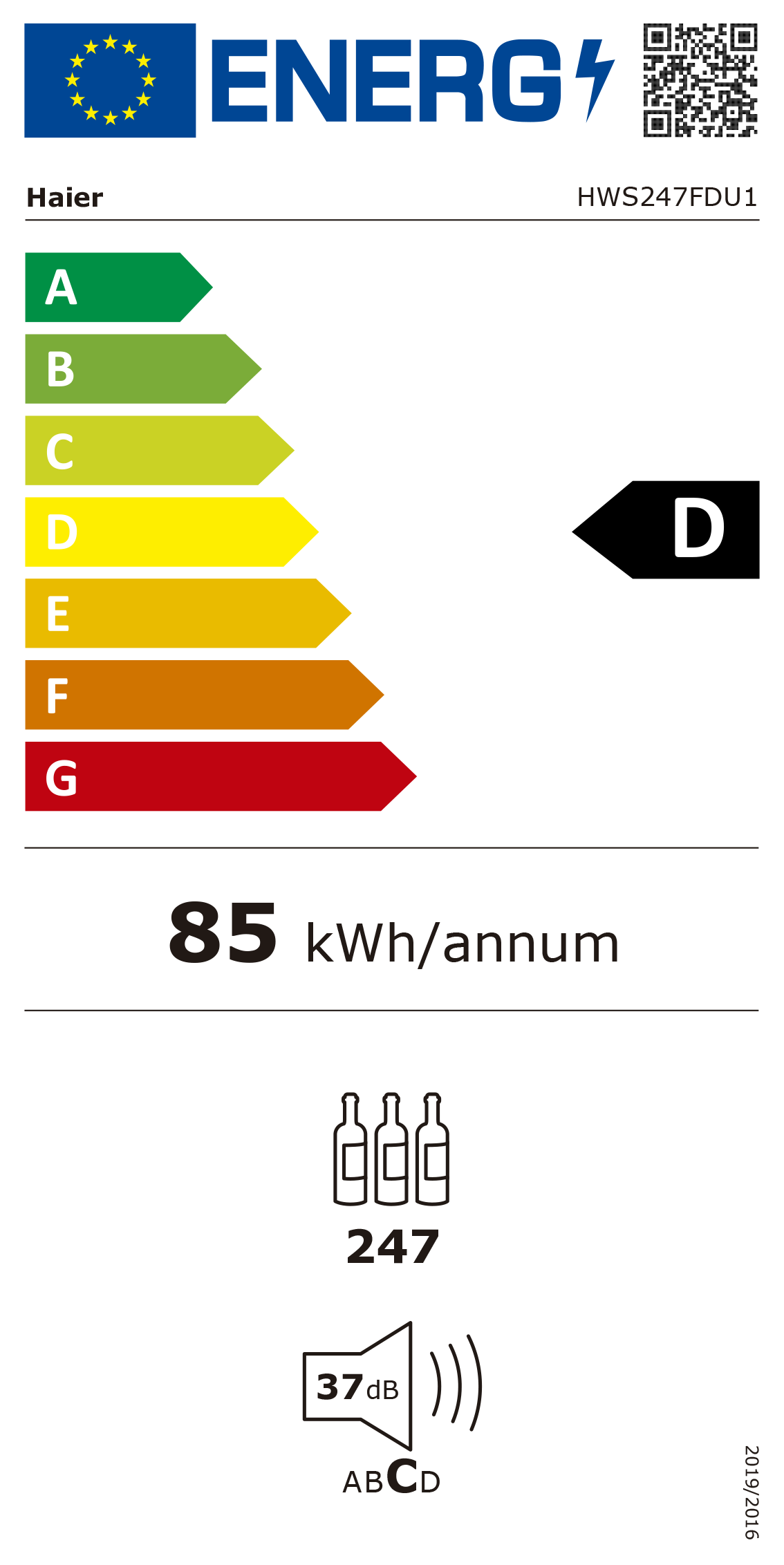 Consumo anual de energia (kWh): 85