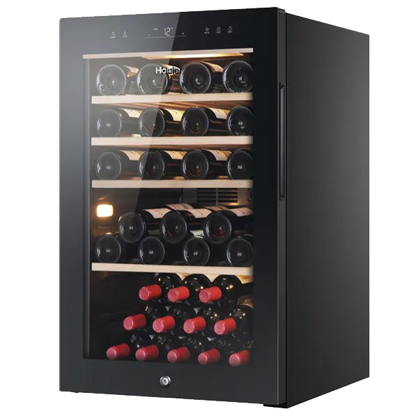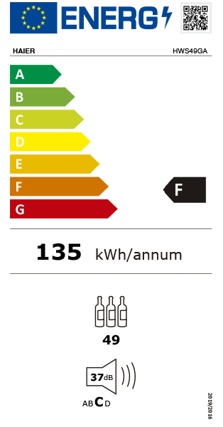 Tipo: Monozona Cor / material da porta: Grey Tint / Vidro Classe de eficiência energética: F Classe de ruído: C Número de garrafas: 49 Capacidade líquida total: 116 L Nível de ruído: 37 dBA Comandos: Eletrónicos na porta Interface: Touch Led Fecho da porta Sistema antivibração Alarme de temperatura excessiva: Led + sonoro Cor / material da porta: Grey Tint / Vidro Moldura da porta: Preto Cor / material do corpo: Preto Pegas: Integradas em preto Número de prateleiras ajustáveis: 4+1 Material das prateleiras: Madeira tipo faia Iluminação: Top Led + led lateral Filtro de carbono Sistema de descongelação (A=Automática / M=Manual): A Tipo de frio: ecológico híbrido Ventilado Nº de compressores: 1 Temperatura: 5~20 Termostato ajustável Consumo de energia anual: 135 kWh Consumo de energia 24h: 0,369 kWh Controlo de humidade: automático Visor de humidade Classe climática: SN (10º-32º) Gás refrigerante: R600a Pés ajustáveis / rodas: 2 / 2 Portas reversíveis Dimensões do produto AxLxP: 820X497X585 mm Peso líquido do produto: 39 Kg