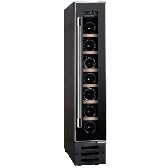 Classe de eficiência energética: C Volume útil: 22 l Capacidade total para garrafas: 7 Cor: Inox/Preto CARACTERÍSTICAS ESTRUTURAIS E FUNCIONAIS Volume útil: 22 l Capacidade total para garrafas: 7 Descongelação Automática Zonas de temperatura distintas: Mono Zona DESIGN EXTERNO Cor / material da porta: Vidro anti UV com moldura em Inox Cor da cabine: Preto Pega: Externa em aluminio CONFORTO DE UTILIZAÇÃO Comandos: electrónicos com display LCD EQUIPAMENTO Indicador Luminoso On/Off Nº de prateleiras: 7 Nº de portas: 1 Prateleiras em madeira Luz Interna: LED (0,25W) DESEMPENHOS Classe de eficiência energética C Consumo de energia: 0,596 kWh Consumo de energia anual: 218 kWh Nível de ruído 39 dBA Classe climatérica: N (16ºC-32ºC) Gás refrigerante: R600a Temperatura atingida no interior: 5º-22º C Temperatura ambiente Min/Máx: 38ºC OUTROS DADOS Nº de pés ajustáveis: (893-883 mm) Portas reversíveis Dimensões do produto AxLxP: 858x150x525 mm Dimensões necessárias para o encastre: 863x160x525 mm Peso do produto: 14,5 Kg