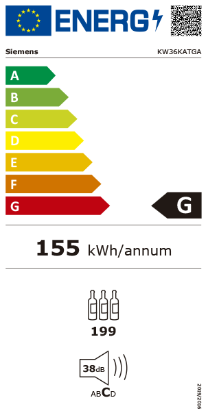 CONSUMO / CAPACIDADE Classe de eficiência energética: G Consumo anual de energia (kWh/ano): 155 kWh/ano Volume líquido total : 370 litros Emissão de ruído (dB(A) re 1pW): 38 dB