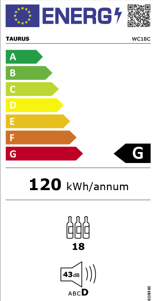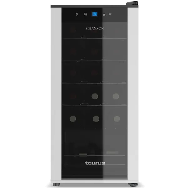 Capacidade: 18 garrafas Capacidade em litros: 50L Refrigeração: Termoelectrico Consumo: 85W Potência sonora: 42 dB Design da porta: Vidro duplo preto + moldura cromada escovada Intervalo de temperatura: 5 – 18ºC Silencioso Painel de controle digital Porta com punho integrado Prateleiras em inox Pés ajustáveis Dimensões 34x45x74cm