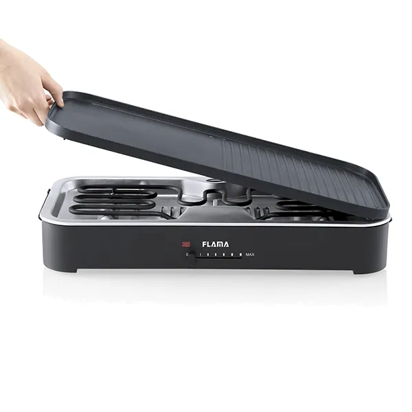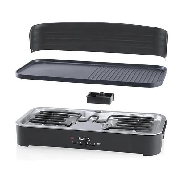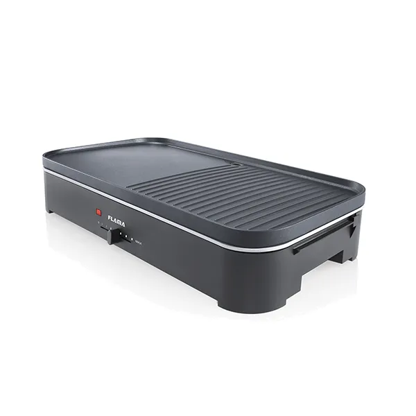 Potência (W): 2200 W Número de temperatura: 4 Desmontável Forma da resistência: Zig-zag Tipo de superfície de confeção: Canelada / Lisa Dimensão da superfície de confeção: 500 mm x 250 mm Tabuleiro para resíduos Pés antideslizantes Placa removível Comprimento do cabo (cm): 130 cm Material da superfície de confeção: Alumínio Revestimento da superfície de confeção: Antiaderente Dimensões: 51.6 cm x 27.5 cm x 10 cm