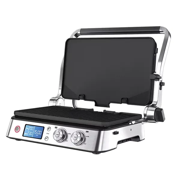 5 funções de cozedura: grelhador de contacto & sanduíche, grelhador aberto a 180º, função placa lisa, função placa ondulada e forno.