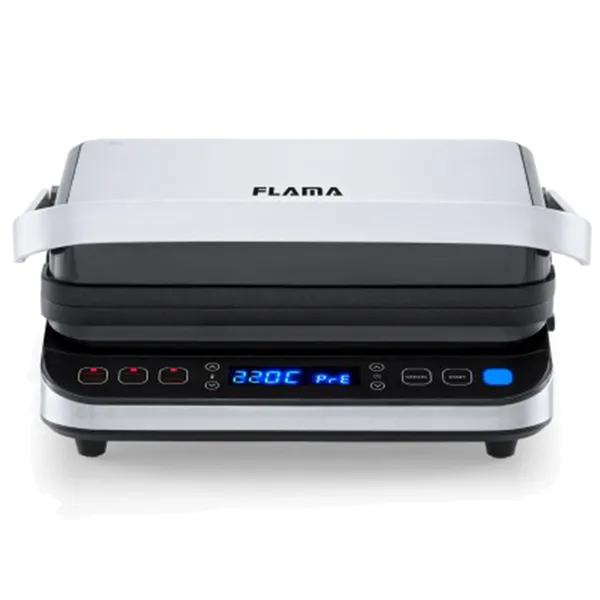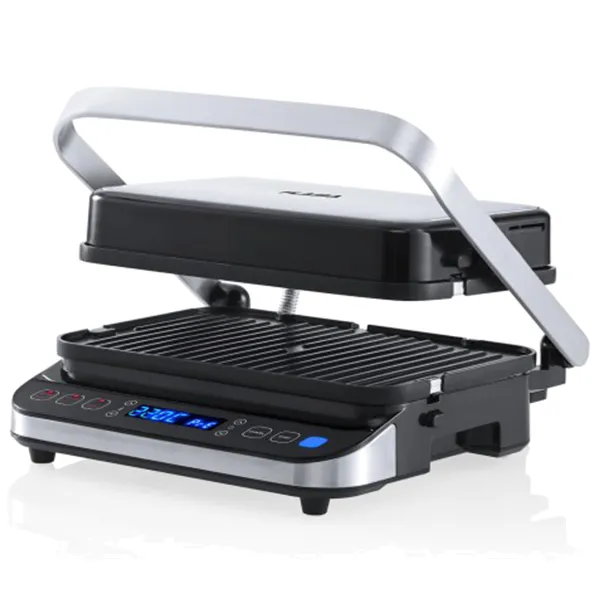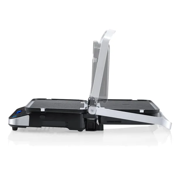 Potência (W): 2000 W Dimensão das placas (cm): 32 cm x 22 cm Placas desmontáveis Placas dupla face Ângulo de abertura máxima: 180 º Placas antiaderentes Termóstato regulável Temporizador Bandeja recolha resíduos Bandeja removível Posições de confeção: 4 Enrolador de cabo Comprimento do cabo (cm): 108 cm Indicador luminoso de funcionamento Dimensões: 35.5 cm x 33.8 cm x 16.5 cm