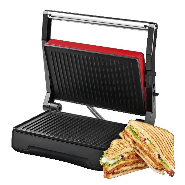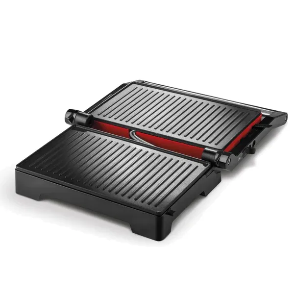 Potência: 1000W Superfície de revestimento antiaderente: 23 x 14,5 cm Abertura 180º Controlo automático de temperatura Pega de toque frio