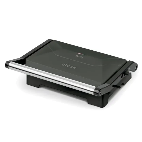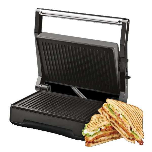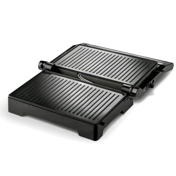 Potência: 1000W Superfície de revestimento antiaderente: 23 x 14,5 cm Abertura 180º Controlo automático de temperatura Pega de toque frio