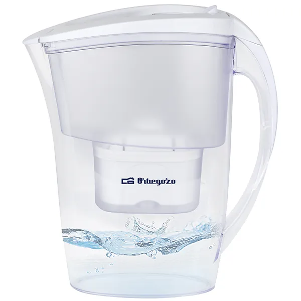 Inclui 3 filtros. Capacidade total de 2,4 litros, 1,2 litros de água filtrada. Indicador da validade do filtro. Design ergonômico e prático, adequado para o frigorifico. Reduz os niveis cloro e sal.