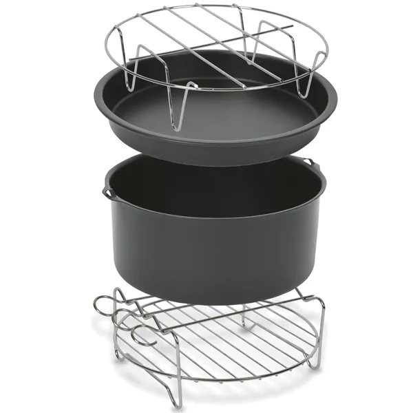 4 acessórios: forma de bolos, placa de pizza, grelhados com espetos e suporte em metal Compatível com: EZ505810, EZ505D10, EZ401D10, EZ905D20, EZ501D10, EY201815, EZ501810