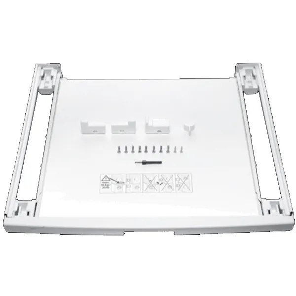 Kit de montagem em coluna, com mesa extraível para secadores com tampo não amovível (painel alto) Branco Compatível com: – WTG87239EE – WTG87249ES – WTG86260ES – WTG84260ES – WTG86263ES – WTG85239EE – WTW85439EP – WTG85231EE – WPG23100ES