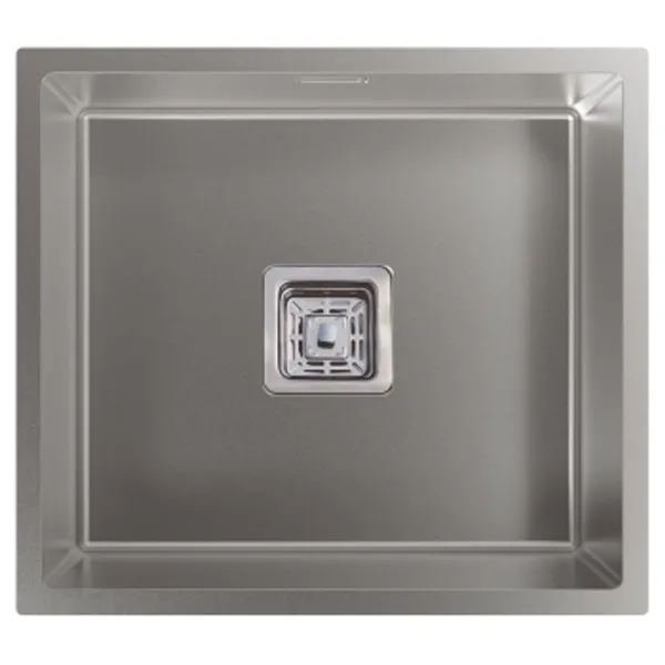 Cuba quadrada com raio de 10 mm Instalação em móvel de 60 cm Dimensões: 49 x 44 cm Profundidade da cuba de 20 cm Fundo de absorção de ruído Revestimento anticondensação Aço inoxidável AISI 304 18/8 Válvula com cesto 3 1/2” Grossura 1,2mm