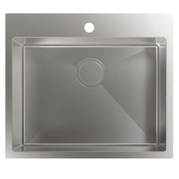 Cuba quadrada com raio de 10 mm Instalação em móvel de 60 cm Dimensões: 59 x 51 cm Profundidade da cuba de 20 cm Fundo de absorção de ruído Revestimento anticondensação Aço inoxidável AISI 304 Válvula oculta com cesto 3 1/2” Grossura 1,2mm