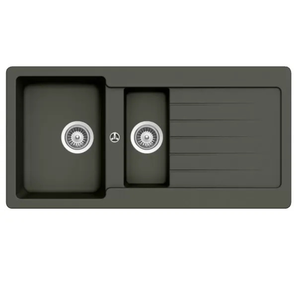 Medida externa: 1000x500mmMedida das cubas: 313×429/159x353mmProfundidade: 200/130mmFornecido Com: Sifão/Válvula manual de cestaTamanho do móvel: 600mmAcabamento: AsphaltAplicação: Encastrar