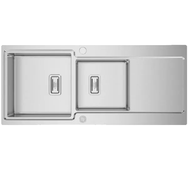 Medida externa: 1160x500mmMedida das cubas: 400×400/340x320mmProfundidade: 200mmFornecido Com: Sifão/Válvula automática FIRST 022224ASTamanho do móvel: 900mmAcabamento: EscovadoAplicação: Á face e superior