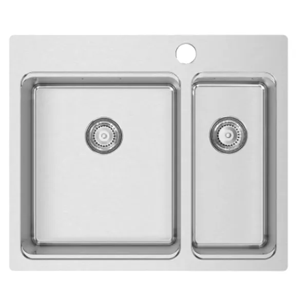 Medida externa: 595x505mmMedida cuba: 340×400 / 180x400mmProfundidade: 200 / 150mmFornecido Com: Sifão/Válvula manual de cesta 0722249S + Tábua VERSUS 03562Móvel: 600mmAcabamento: PolidoAplicação: Á face e superior