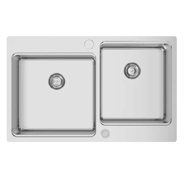 Medida externa: 810x505mmMedida cuba: 400×400 / 340x400mmProfundidade: 200Fornecido Com: Sifão/Válvula automática de cesta 0722222 + Tábua VERSUS 03562Móvel: 900mmAcabamento: PolidoAplicação: Á face e superior