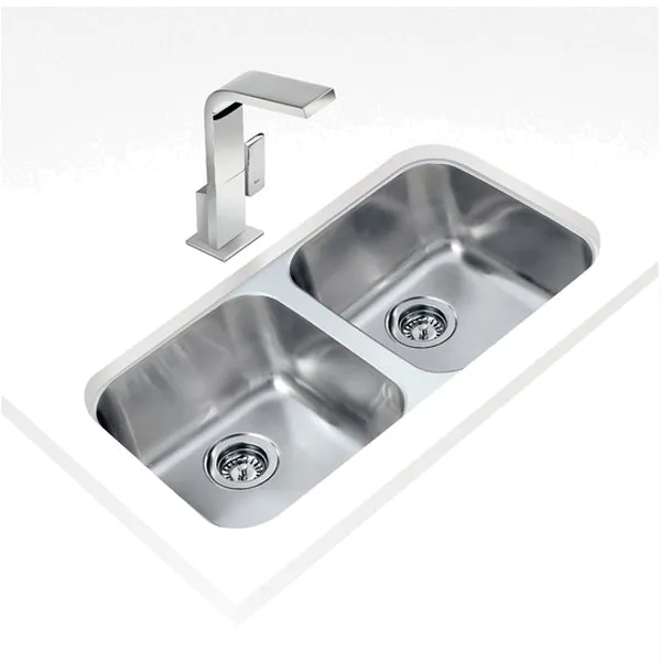 Sob tampoLava-louças de duas baciasAço inoxidável 18/10Válvula de 3 ½”Embelezador do sistema anti inundaçãoAcessórios de fixaçãoChapa de grande espessuraProfundidade das bacias: 200 mmMóveis de 90 cmMedidas gerais (axlxp) 464x779x180mm