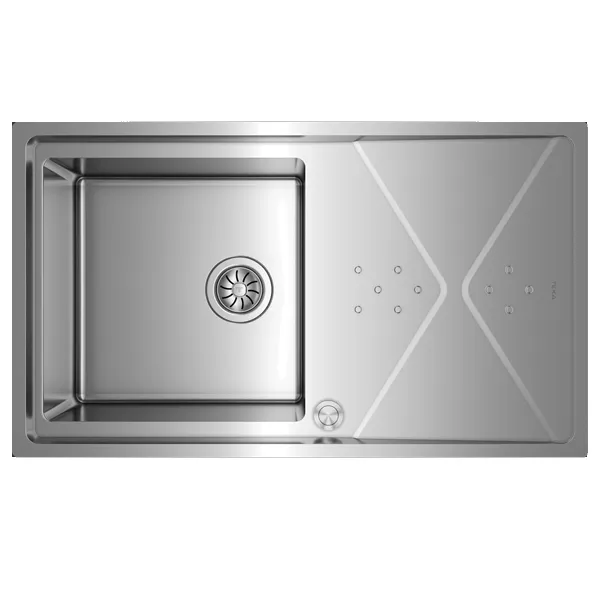 Lava-louças em inox polido Brooklyn 1 bacia + 1 escorredor Reversível Dupla instalação: encastre ou à face Válvula automática V-control 3 1/2 com sifão SilentSmart,50% menos ruído Profundidade da bacia: 210 mm Largura do produto (mm): 504 Comprimento do produto (mm): 864 Móveis de 50 cm