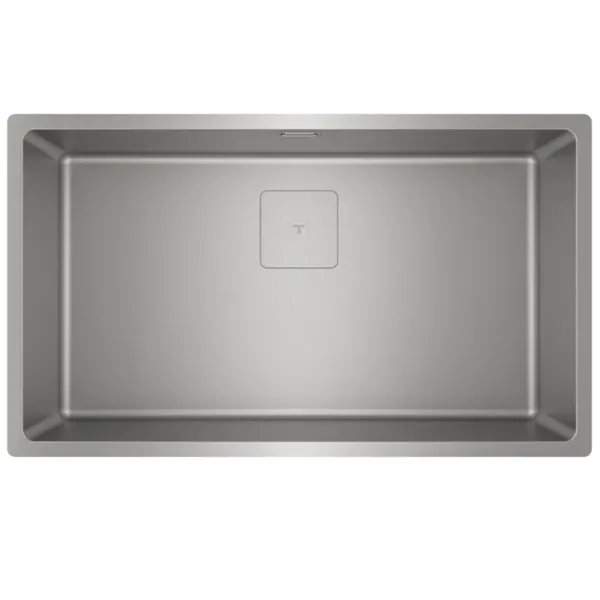 1 bacia de 710x400x200 mm Tratamento Fortinox Aço inoxidável 18/10 Tripla instalação: encastre, à face ou sob tampo R15 para facilitar a limpeza Silent Smart, 50% menos ruído Válvula 3½” e sifão Móveis de 80 cm Dimensões (lxp): 750x440mm