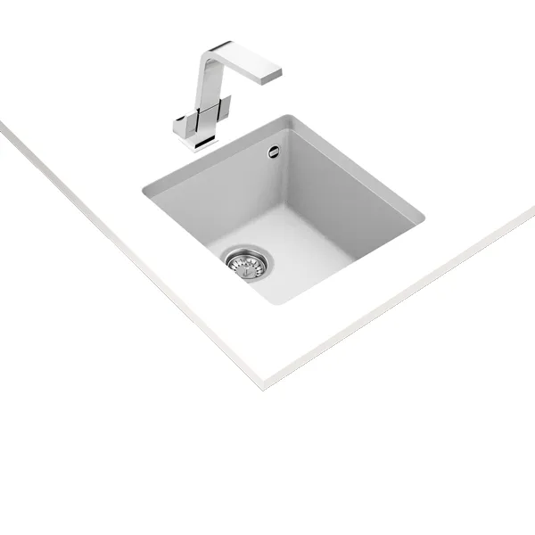 Sob TampoLava-louças de uma baciaTegranito de alta resistênciaNão rugoso e fácil de limparProfundidade da bacia: 200 mmMóveis de 50 cmMedidas gerais (lxp): 440x440mmCor: Branco Ártico